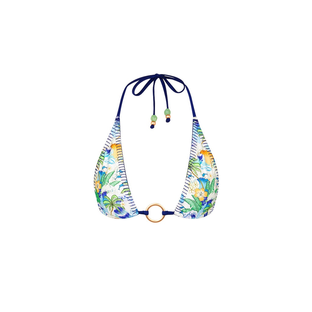 TOP227: Lace Stitch Ring Halter Bikini Top - Blue Crush