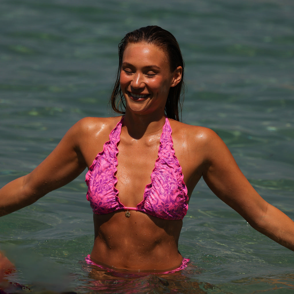 TOP225: Lettuce Edge Halter Bikini Top - Bubble Berry