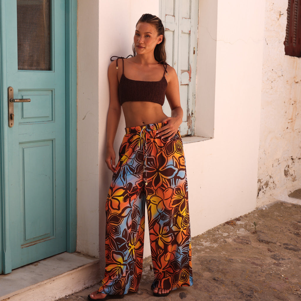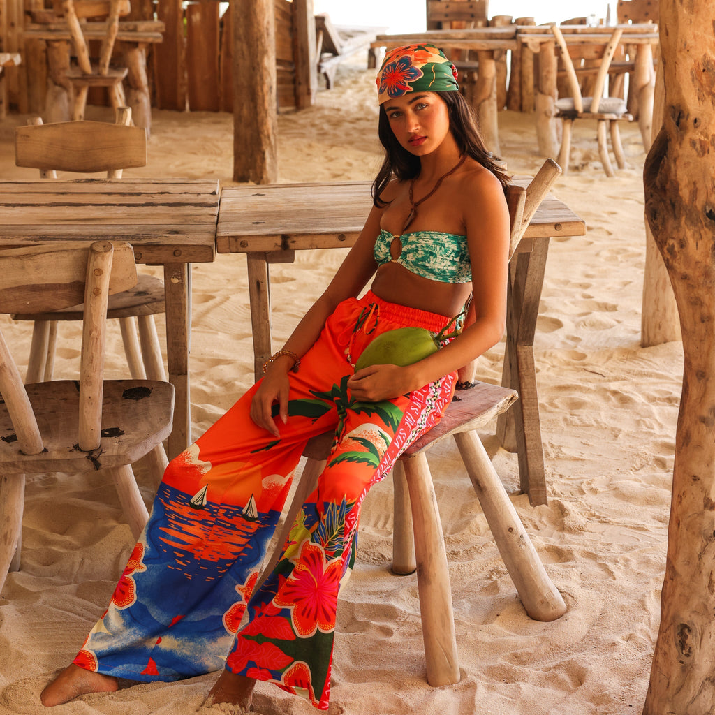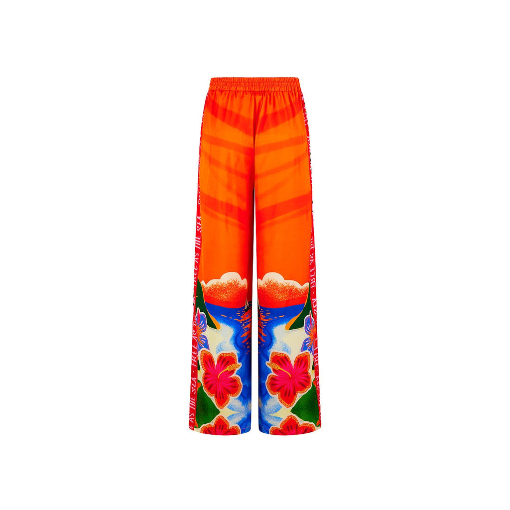 12496: Relaxed Drawstring Pants - Hibiscus Rainbow