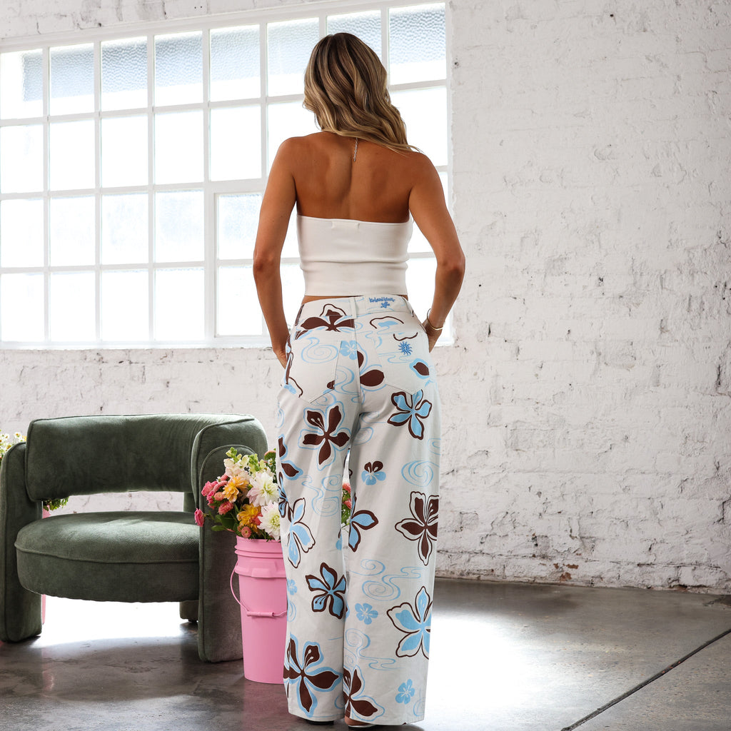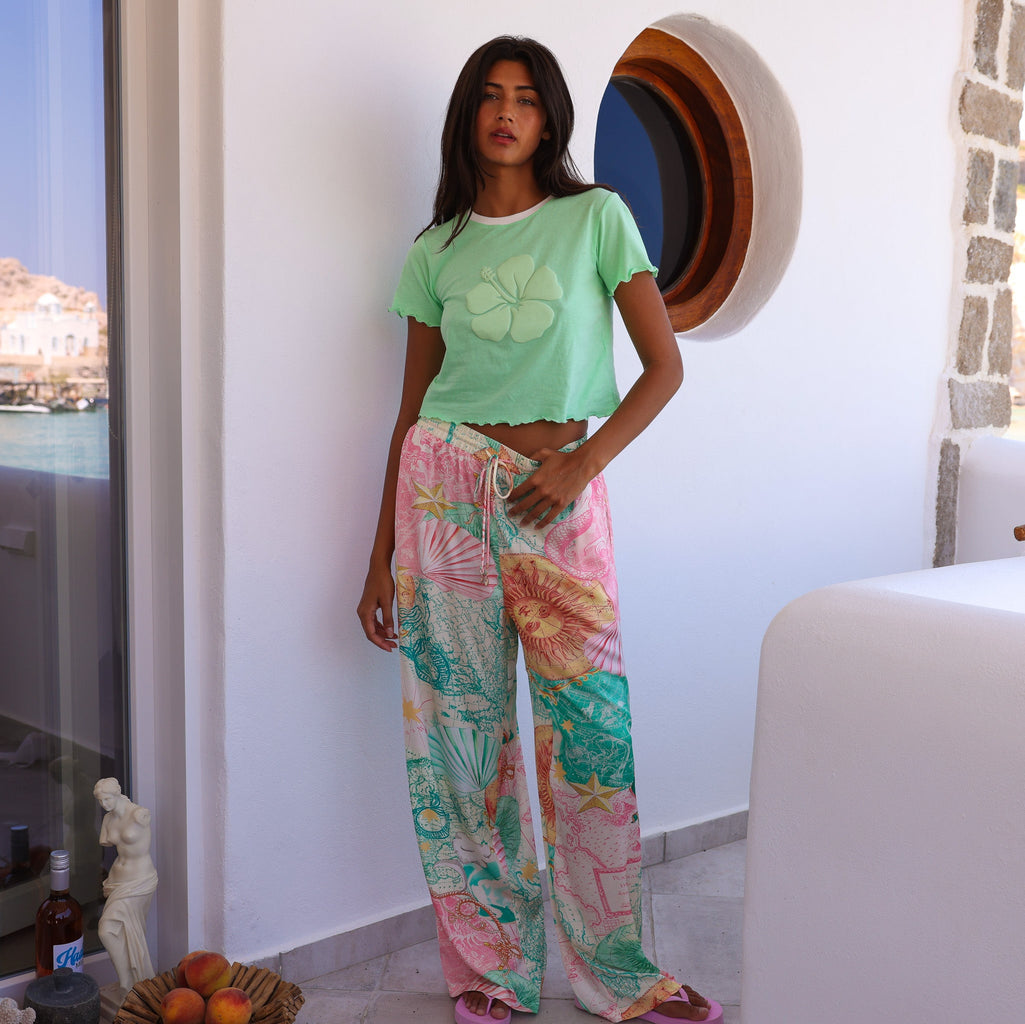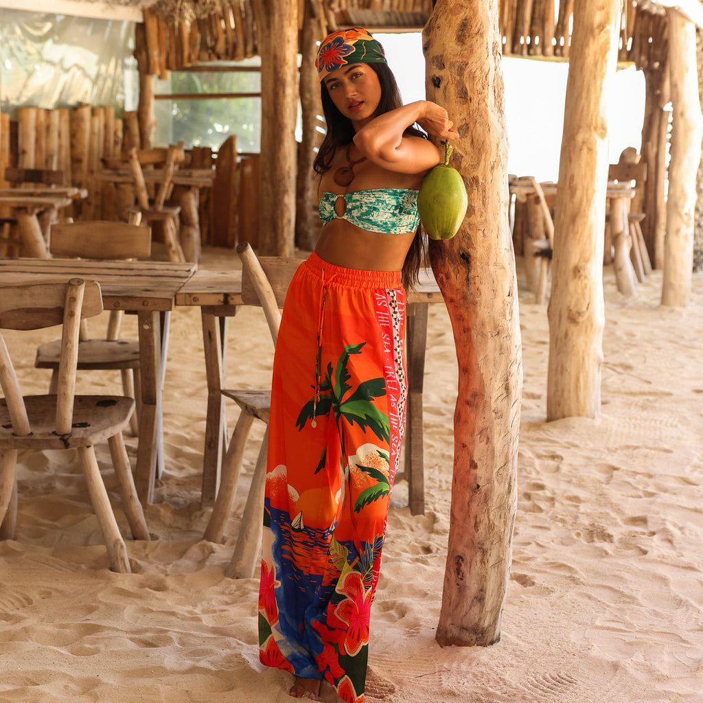 12496: Relaxed Drawstring Pants - Hibiscus Rainbow