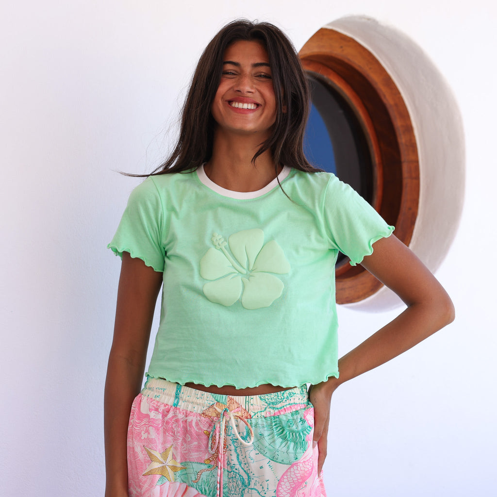 11575: Lettuce Cropped Mini Tee - Apple Sorbet