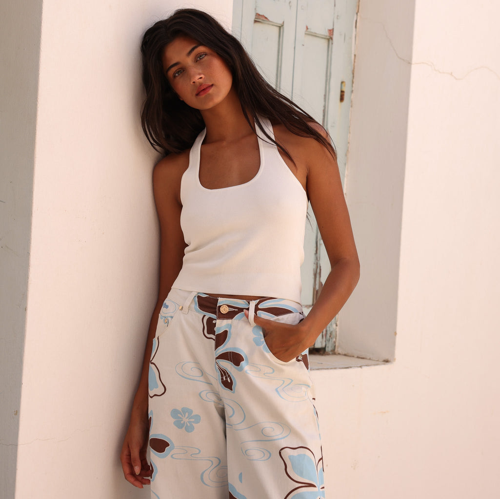 11453: Bind Crop Tank Top - Hibiscus Kisses