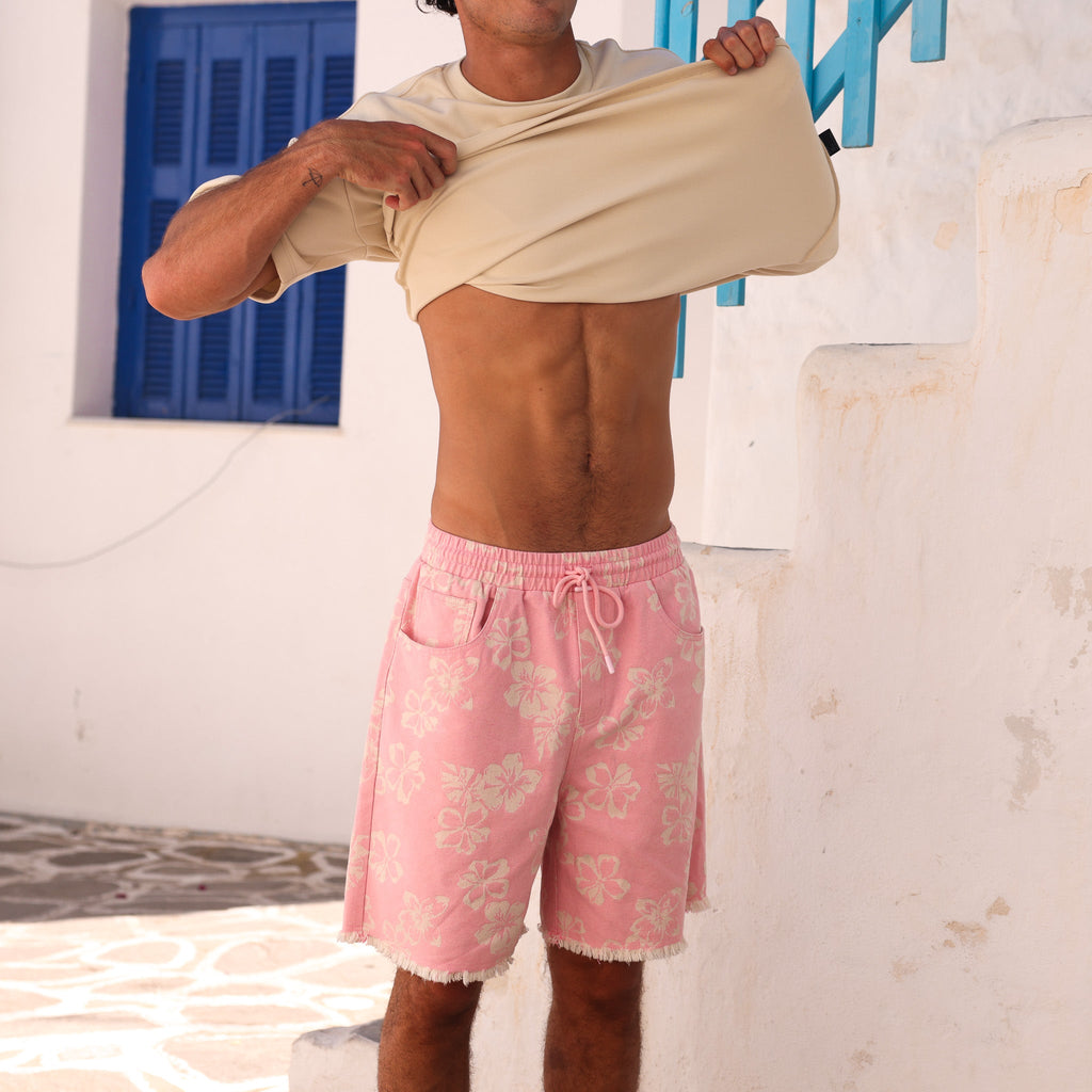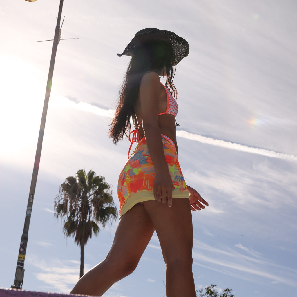 12492: Drawstring Shorts - Hibiscus Rainbow