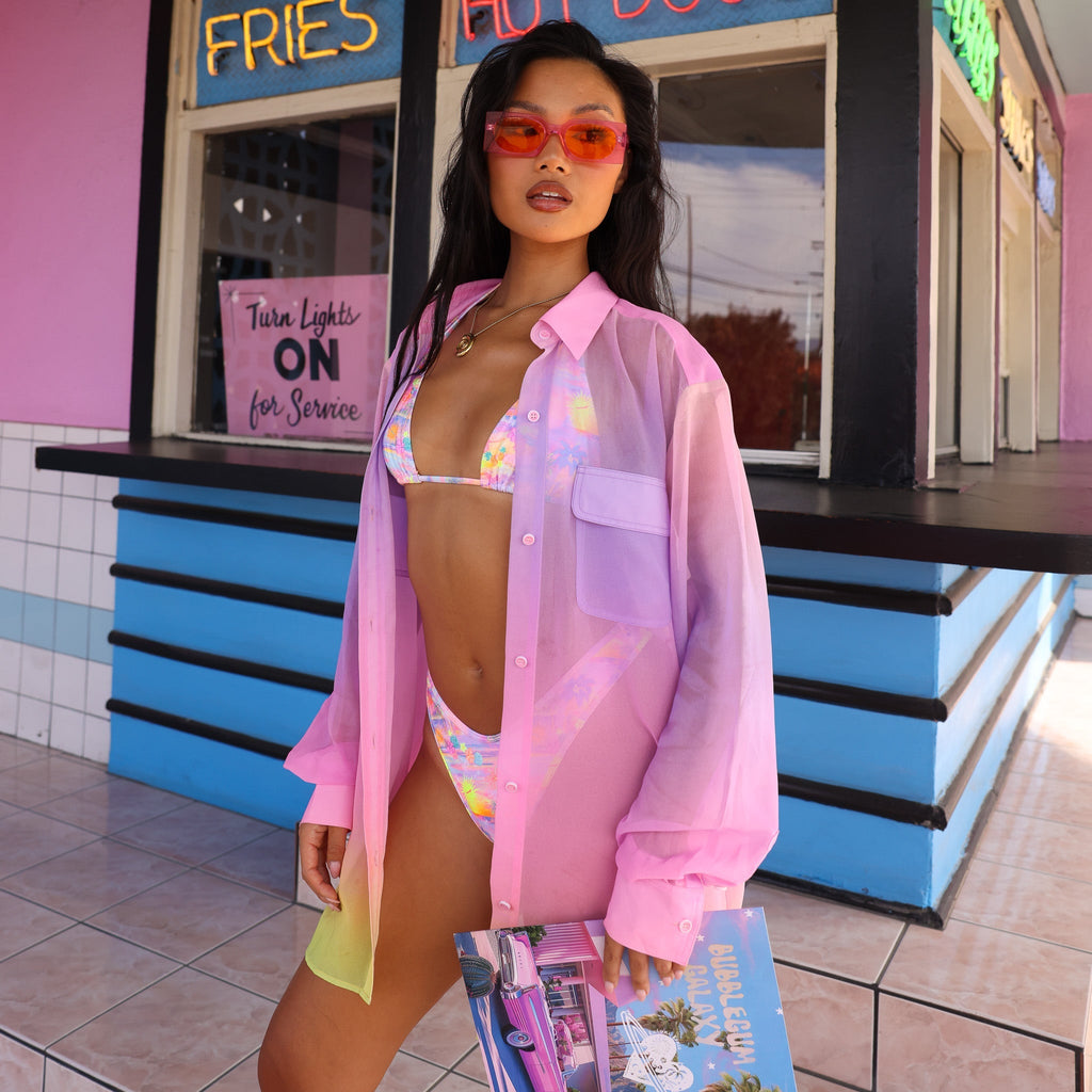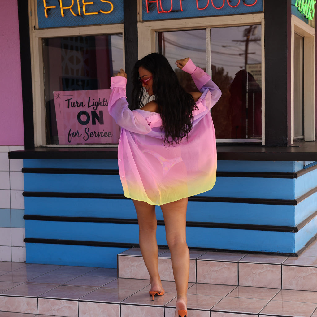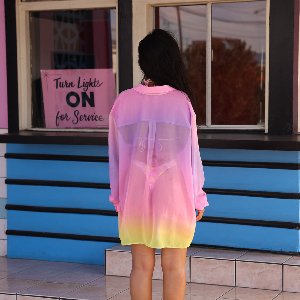 11488: Long Sleeve Beach Shirt - Hibiscus Rainbow