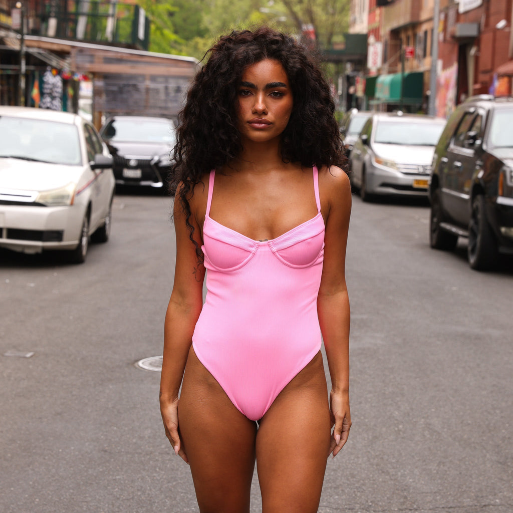 ONE319: Underwire Cheeky One Piece - Taffy Pink Ribbed