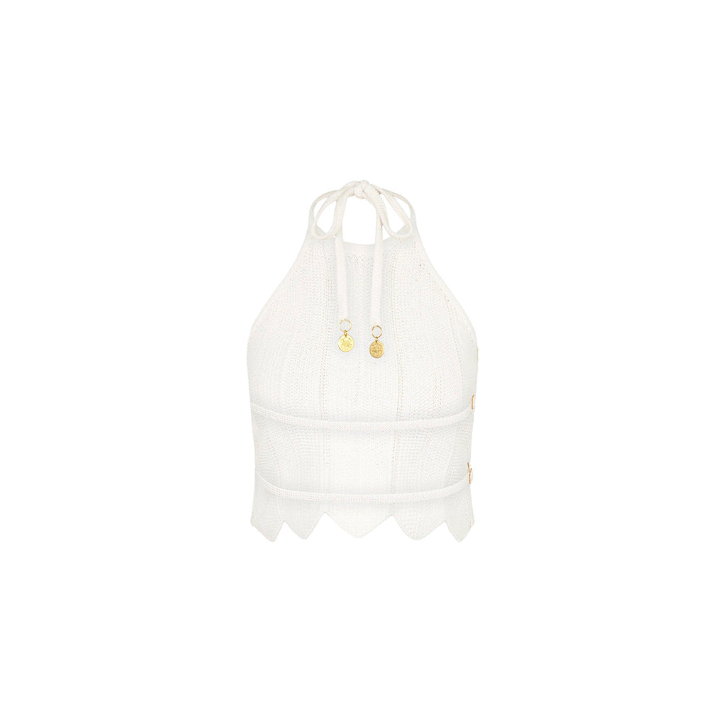 11562: Chevron Knit Halter Crop Top - Whipped White