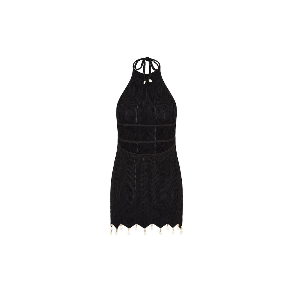 14561: Chevron Knit Halter Mini Dress - Twilight Black