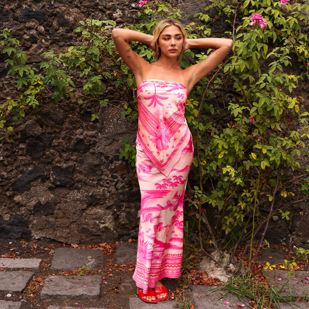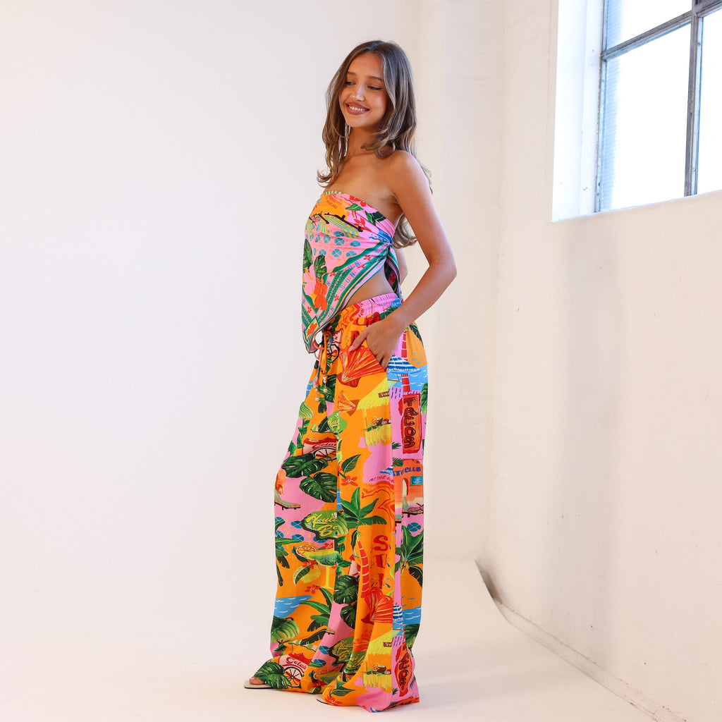 15576: Bias Drawstring Maxi Skirt - Tropic Dip