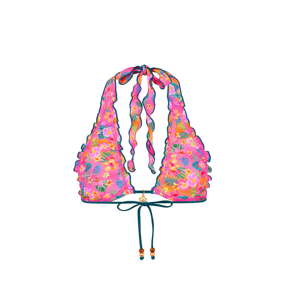 TOP202: Frill Halter Bralette Bikini Top - Tropic Dip